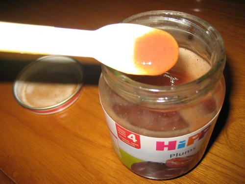 吃了幾口黑棗泥的口味,裡面就是很單純的黑棗的香味和味道,再來就是水分而已,完全不會覺得甜味,只有水果自然的甜味而已,可以攝取到有"中藥的綜合維他命"之稱的滋補又養生的天然黑棗,而且HIPP的黑棗泥也可以單純的直接吃,也可以搭配著HIPP的米精或蕎麥精一起混著吃。