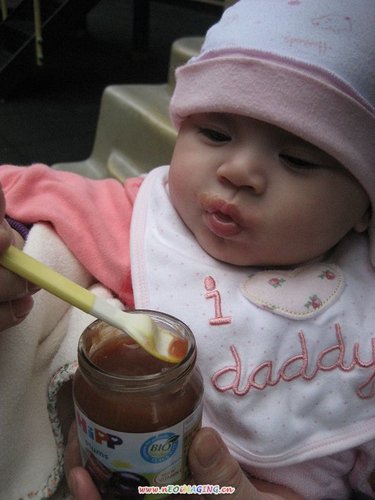 湯匙只要一靠近,Chloe就會很自動的打開來,小孩子愛吃總是件好事,還好我選對了品牌!