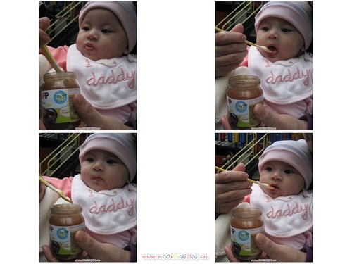 這個是繼上次吃HIPP免敏純米精後拍到的第二張照片--強力吸吸嘴!!看的我和媽媽都笑著說: Chloe,是不是有這麼好吃呀?!