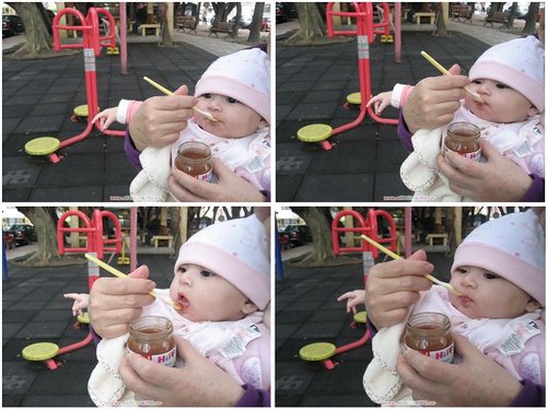 吃完了ㄧ口,很快的自己又嘴巴張大大的要吃,不知不覺也一下子就餵了好幾口
