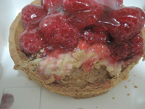 問我好不好吃? 嗯...是蠻特別的口味-覆盆子,裡面蠻多顆的,底下的餅皮不膩也不會很甜,吃起來有點脆脆軟軟的,應該是說他的拿捏度很剛好。